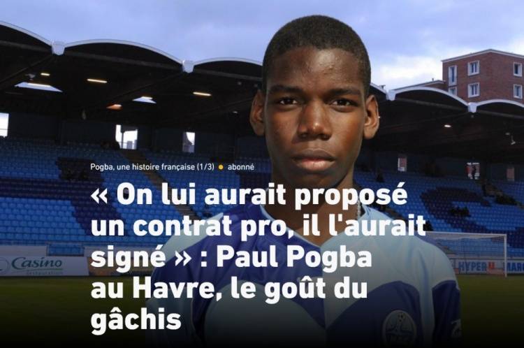 勒阿弗尔的犹豫不决最终导致博格巴接受曼联的报价,俱乐部以极低的12万欧价格失去了这位天才,勒阿弗尔高层指责这是掠夺行为。而据称,球员父母每人从曼联获得了10万欧,博格巴母亲在曼市还可以享受免费住房,不过这一点被本人否认。至于博格巴的合同,前八个月每月工资700欧,17岁时涨到了2万欧。事后,球员认为勒阿弗尔没有给他机会,父母认为他在那里没有进步,而当时的勒阿弗尔主席卢维尔认为,给一名15岁的球员这么多钱是不合理的(当时勒阿弗尔的报价为月薪5000欧)。